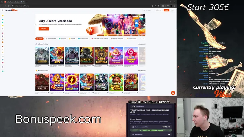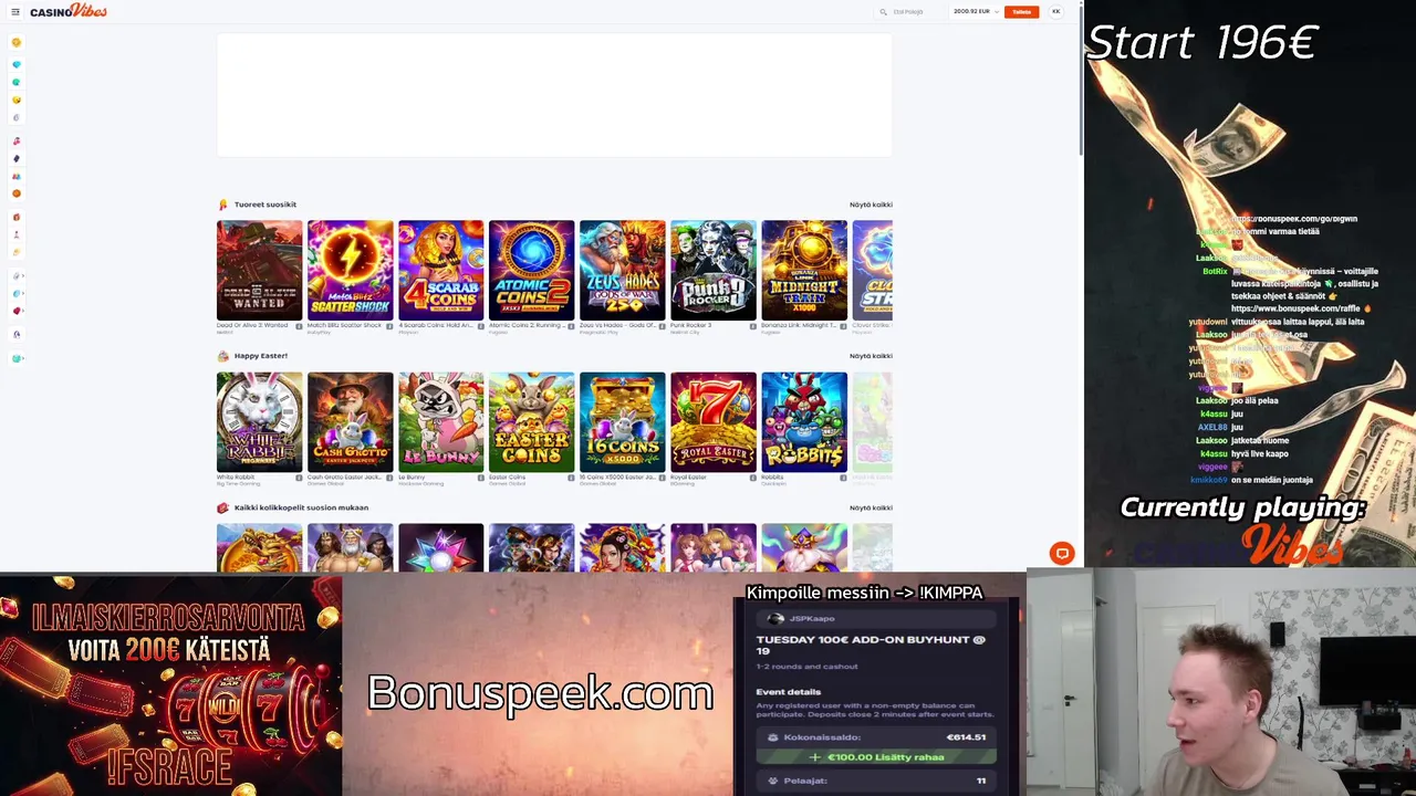 OSTOJA 20:25 !Kimppa | !Pelataan 150% MGA + PNP | Bonuspeek.com 16.4.2026 17.30 | Slots & Casino | 314.1 | 81 | 158 | 3h 52m | +9 | |