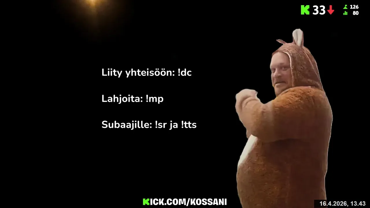 Kossani maksaa n.90€ valitsemaansa hyväntekeväisyyskohteseen + 10 krt/salille, sikarin polton vuoksi. | !dc !mp | !tts ja !sr tilaajille