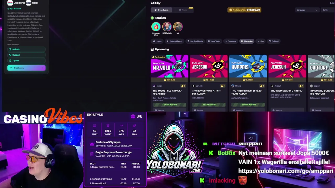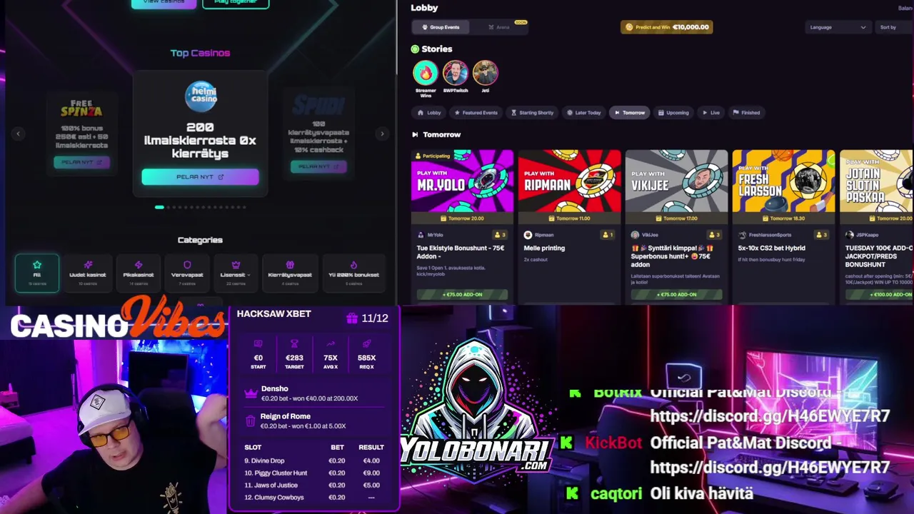 Positive !Vibes | !helmi Bonushunting | !discord New PNP -> !amppari 16.4.2026 23.51 | Slots & Casino | 85.2 | 22 | 34 | 3h 49m | +4 | |